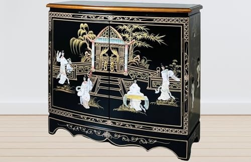 China Warehouse Direct Chinese Furniture, Oriental White Lacquer 2 Door Cabinet with Mother of Pearl