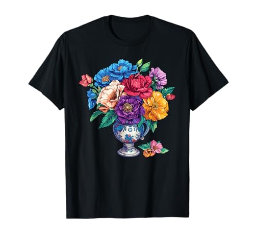 Colorful Floral Bouquet in Blue Porcelain Vase T-Shirt