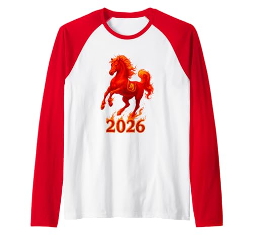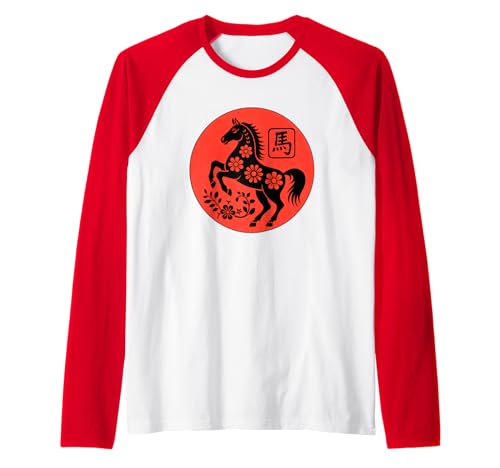 Chinese New Year 2026 Fire Horse Lunar Zodiac Red Horse Raglan Baseball Tee