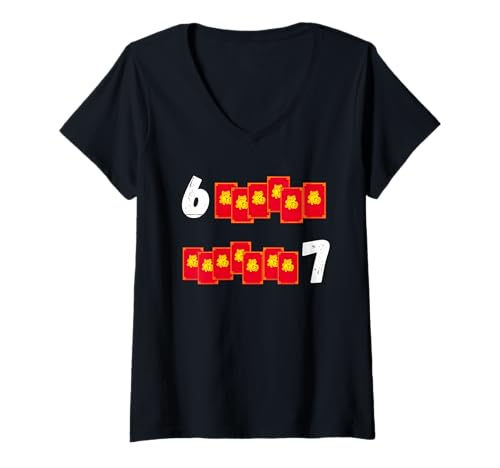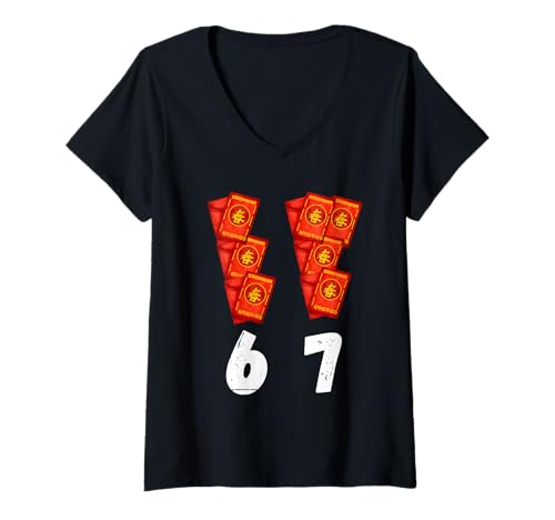 Womens Funny 67 Meme Chinese New Year red envelopes Lunar New Year V-Neck T-Shirt