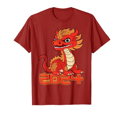 Kids Red Chinese New Year of the Dragon 2024 Lunar Zodiac T-Shirt
