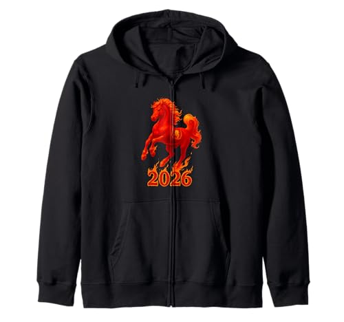 Red Horse Chinese Zodiac Lunar New Year 2026 Fire Horse Zip Hoodie