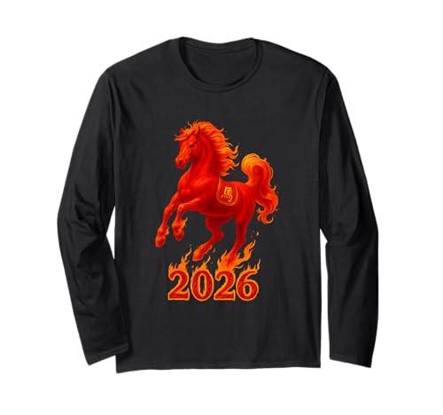 Chinese New Year 2026 Fire Horse Lunar Zodiac Red Horse Long Sleeve T-Shirt