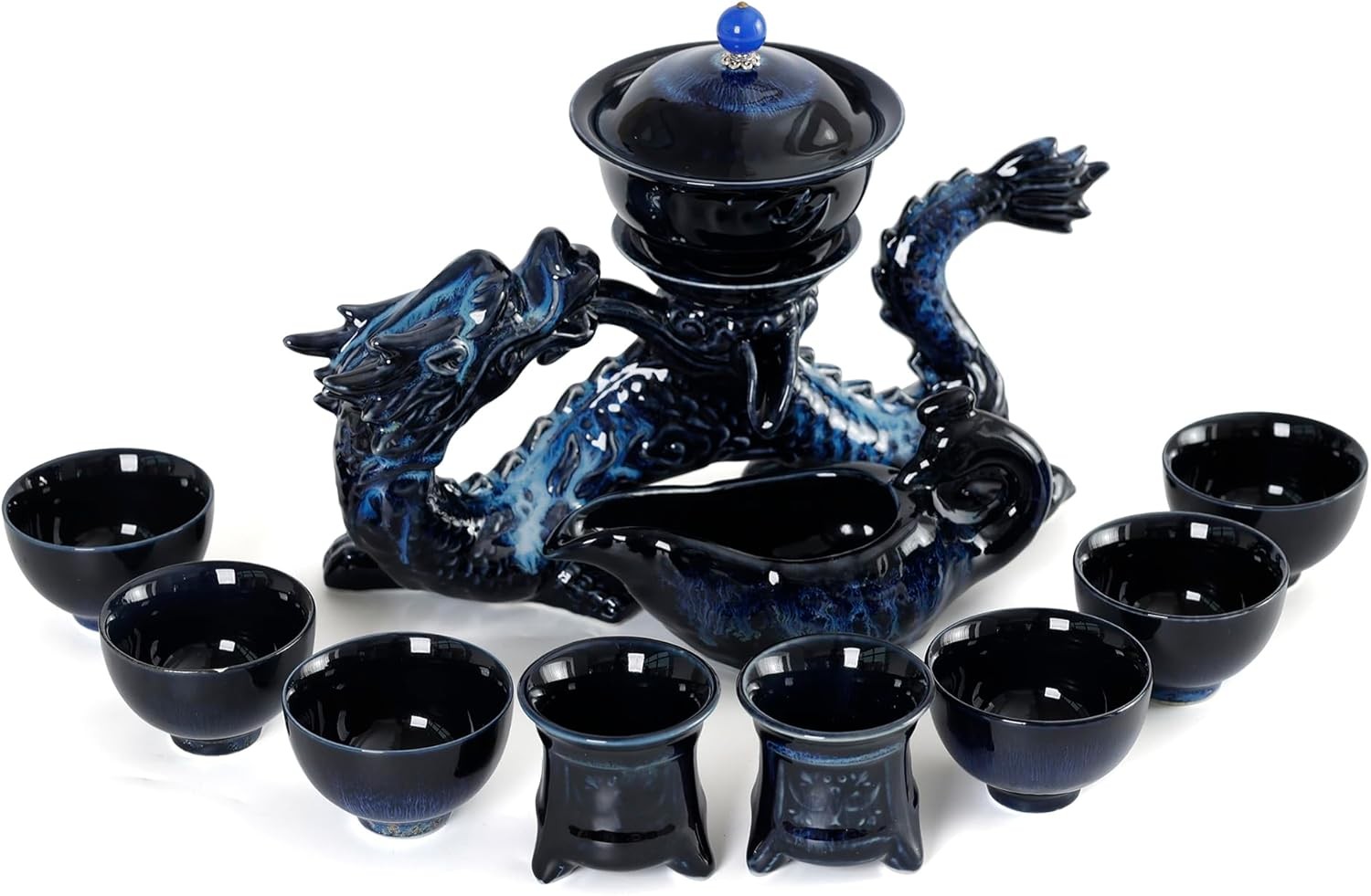 fanquare Semi Automatic Tea Set Blue Chinese Loong Kungfu Teapot Teacup 11pcs T