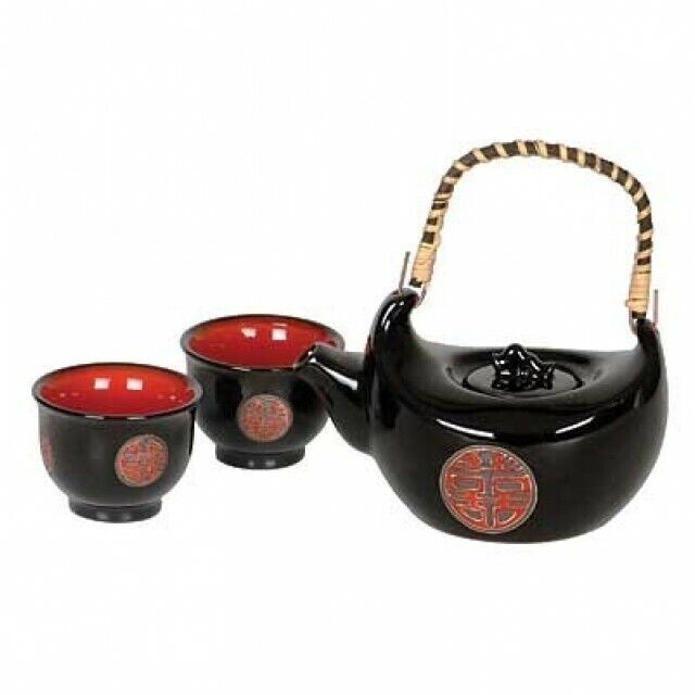 FSH273 Feng Shui Chinese Teapot & Cups Double Happiness for Romance Altar