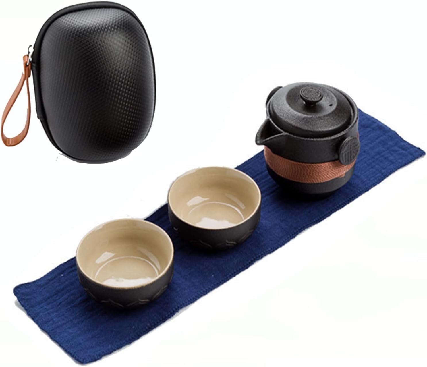Giuneuow Chinese Tea Set Travel Teapot with 3 Cups Tea Cups and Tea Storage Portable Tea Set with Case Travel Teapot Double-Layer