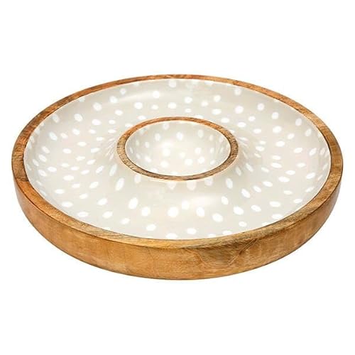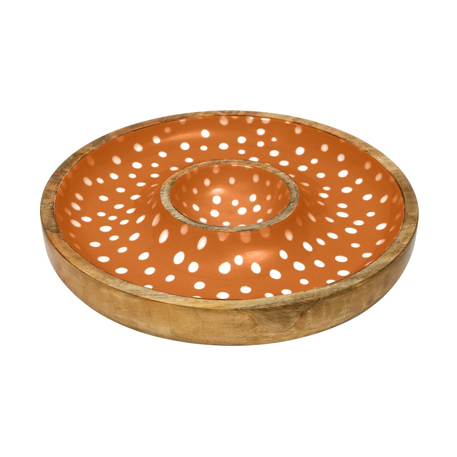 Dexam Sintra Mango Wood Spotted Chip and Dip Bowl - Ochre