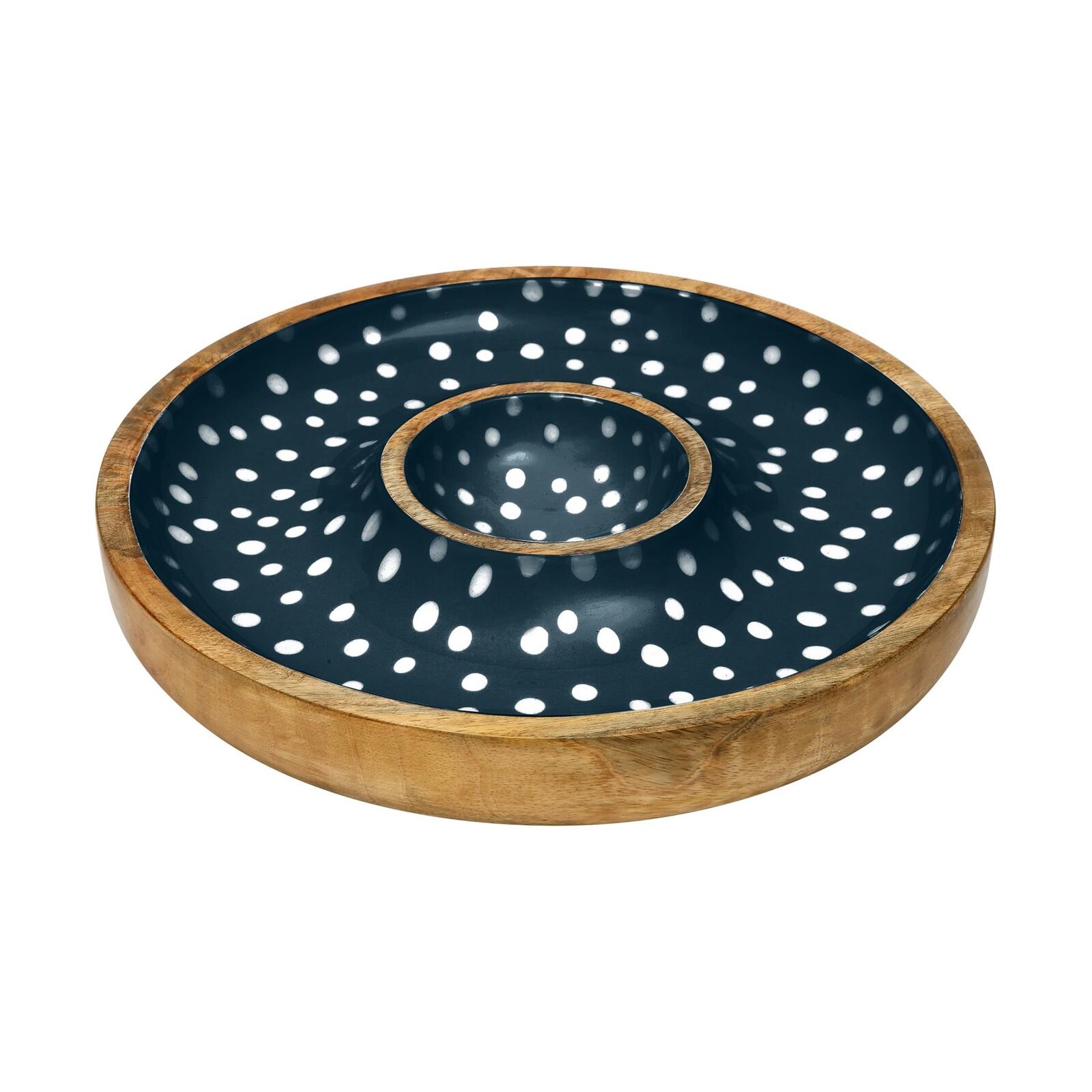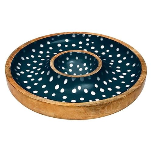 Dexam Sintra Mango Wood Spotted Chip and Dip Bowl - Ink Blue