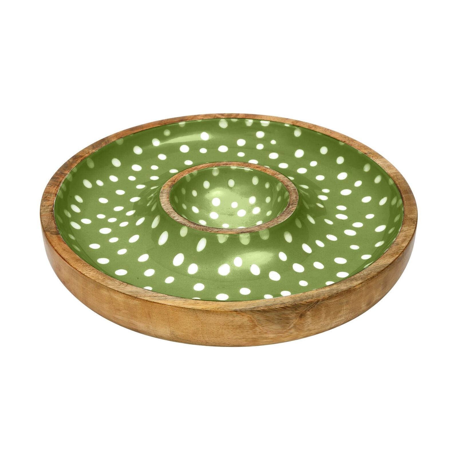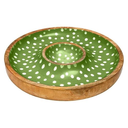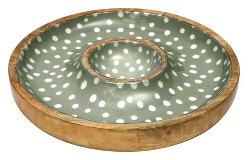 Dexam Sintra Mango Wood Spotted Chip and Dip Bowl - Green