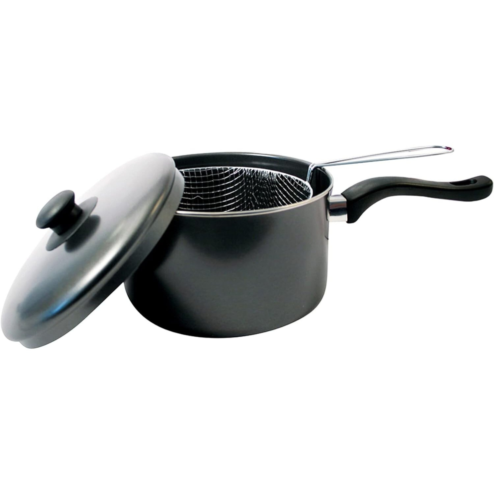 20 CM DEEP FAT FRYER SET 3PC NON-STICK BLACK CHIP PAN POT+LID & BASKET