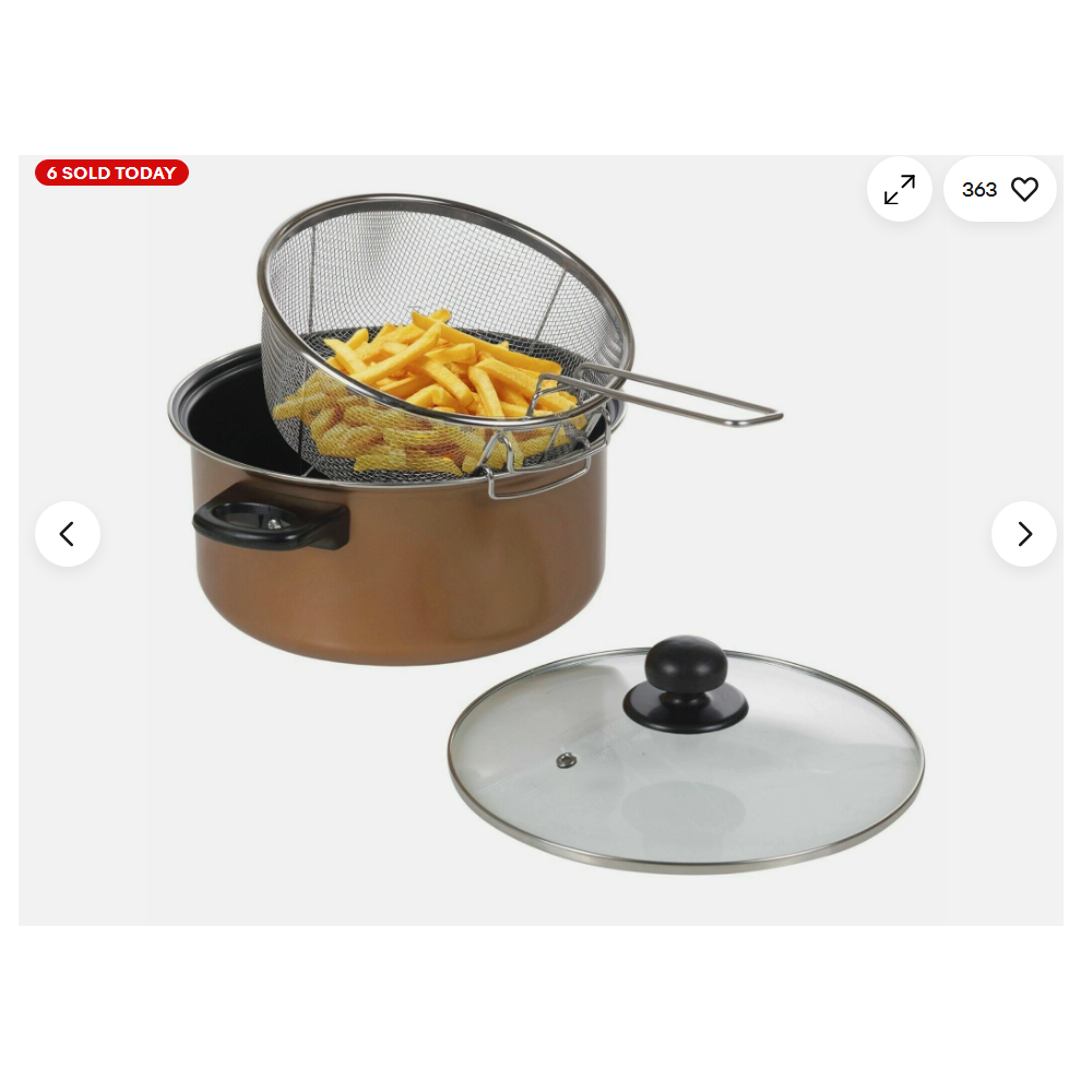 Chip Pan Deep Fat Fryer Cooking Pot Copper Look Non Stick Basket Lid Set 24cm 9"