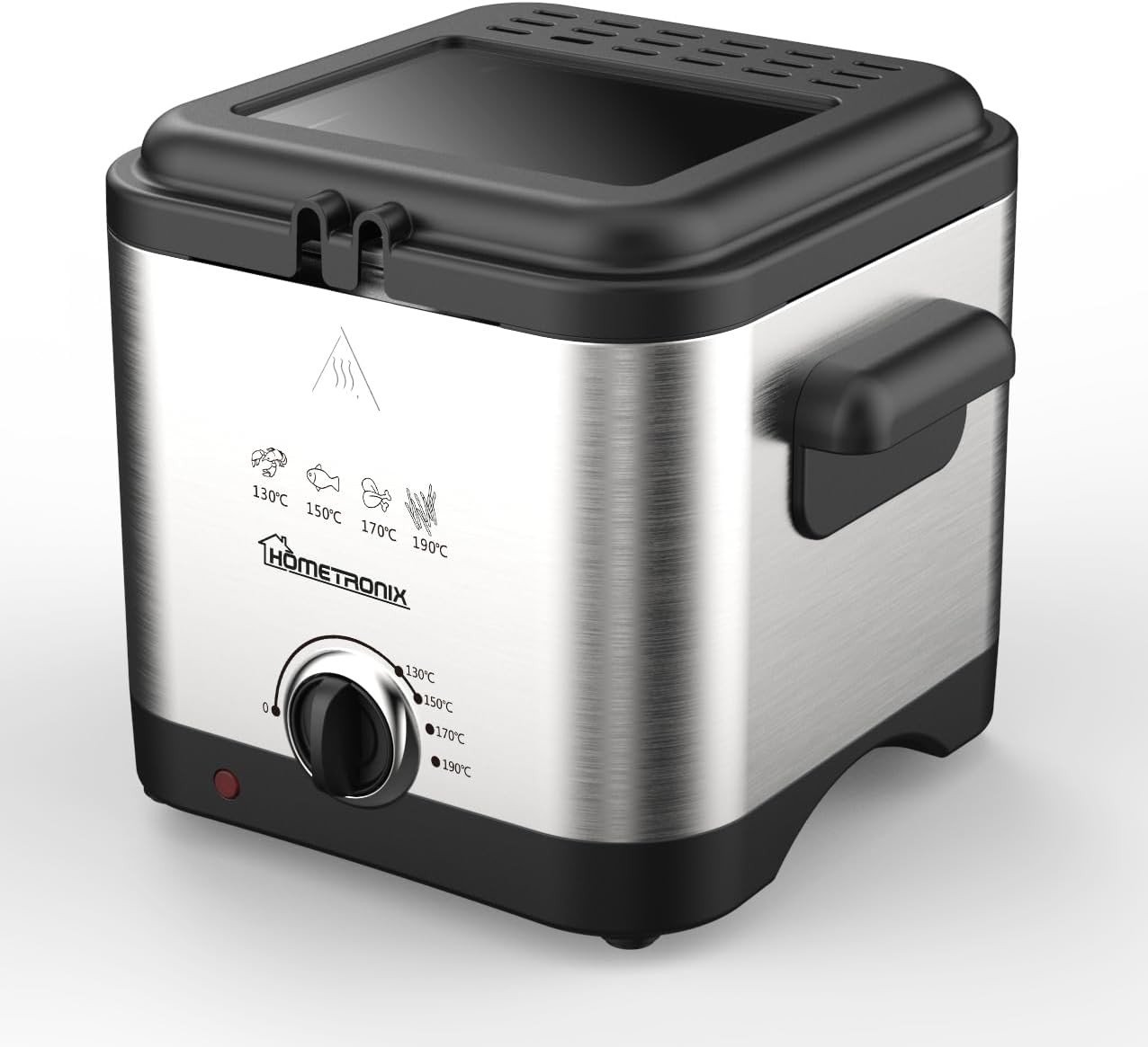 Hometronix Compact 1.5L Deep Fryer, Chip Pan Fat Fryer - 1000W with Adjustable Thermostat (70ºC-190ºC), Cool-Zone Tech, Stainless Steel, Easy Clean Viewing Window