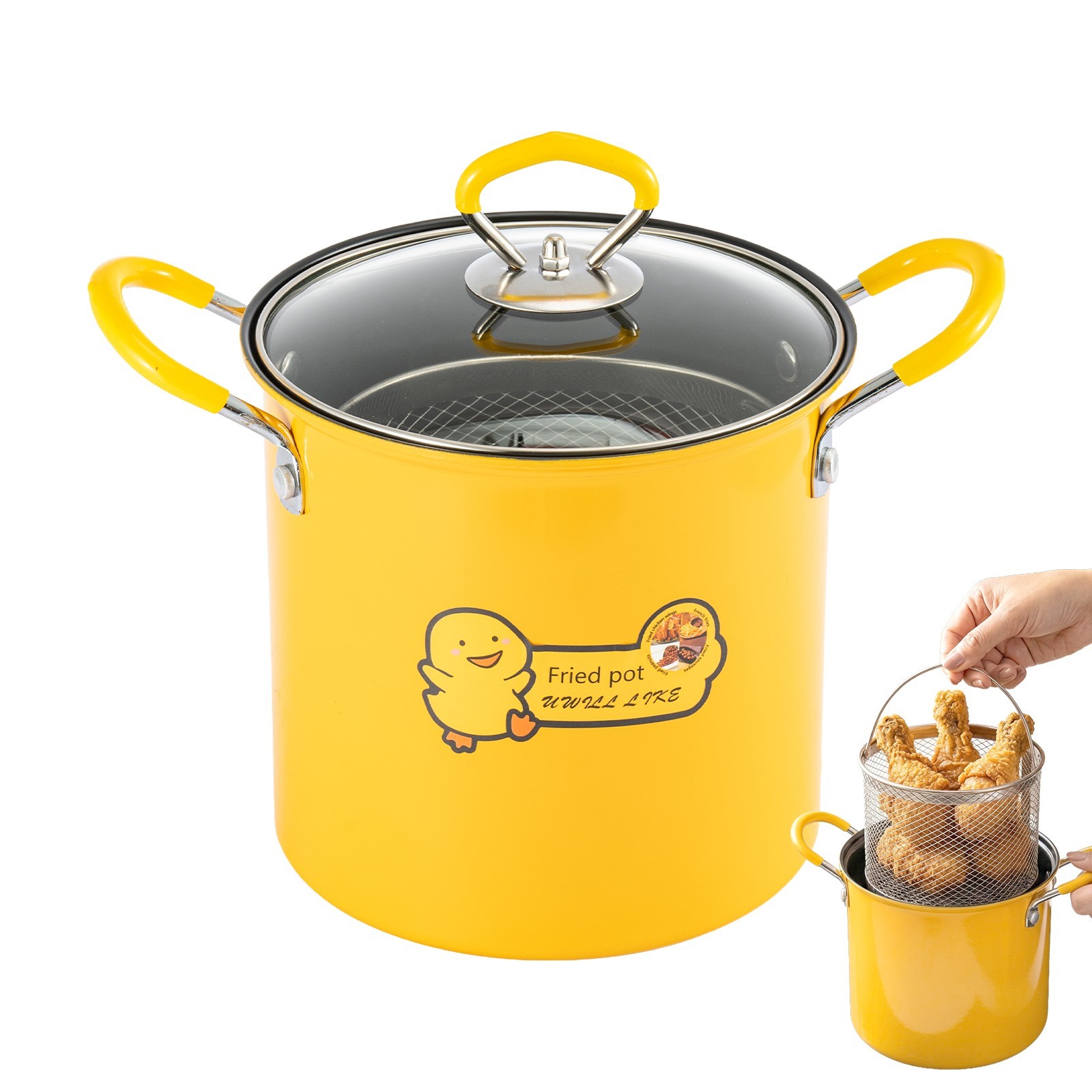 3L Small Deep Fat Fryer Chip Pans with Basket with Anti-scalding Silicone Handle