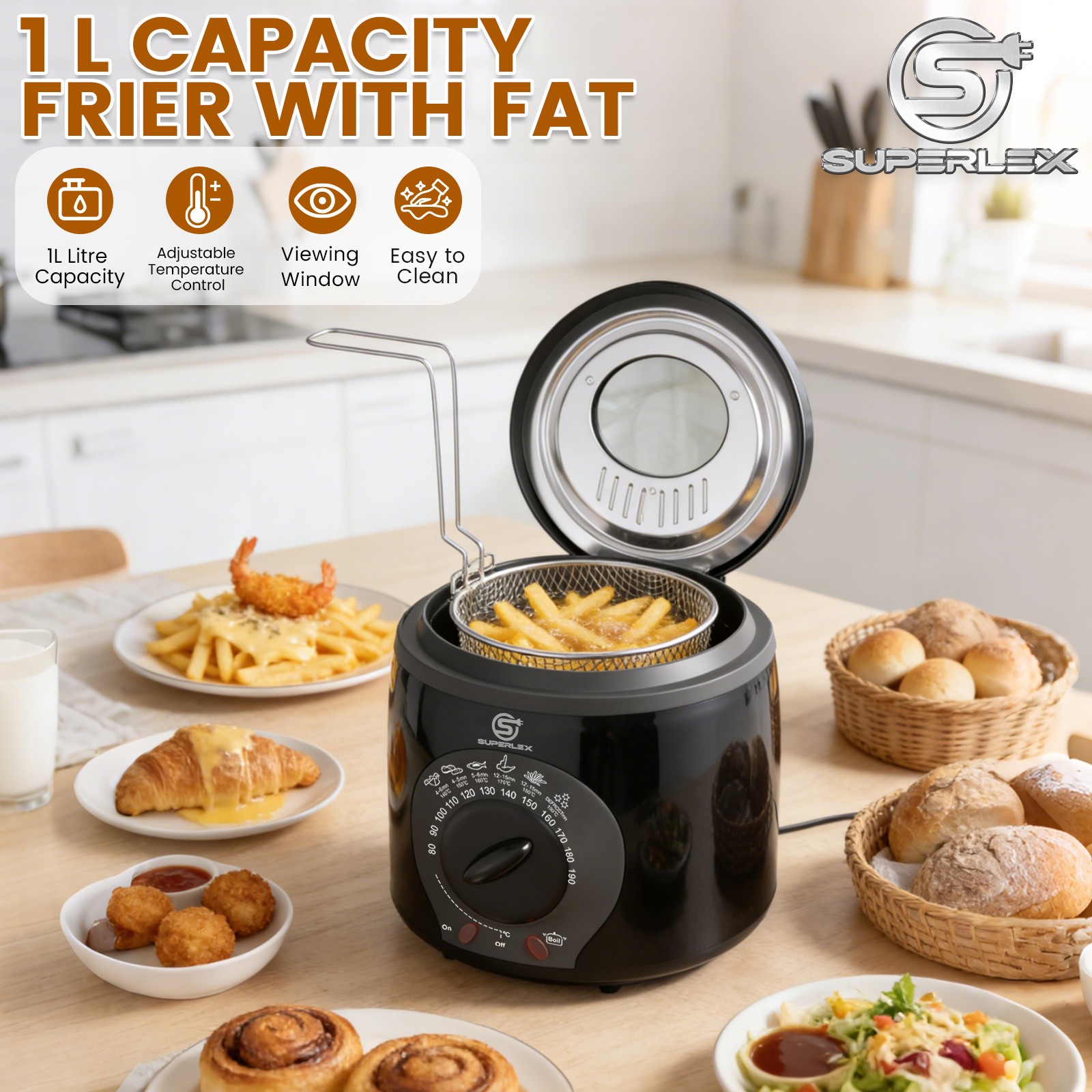 SUPERLEX Deep Fat Fryer Frying Chip Electric Non-Stick Basket Cool Touch Handle