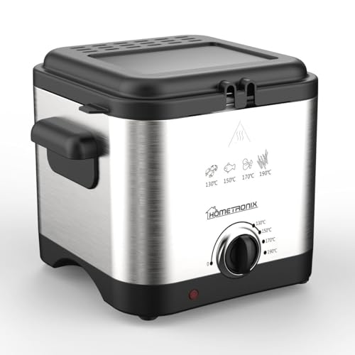 Hometronix Compact 1.5L Deep Fryer, Chip Pan Fat Fryer - 1000W with Adjustable Thermostat (70ºC-190ºC), Cool-Zone Tech, Stainless Steel, Easy Clean Viewing Window