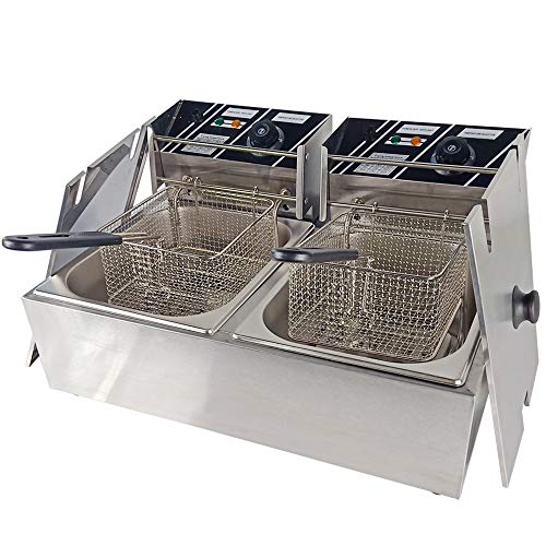 Commercial Electric Deep Fat Fryer - Large Stainless Steel Chip Fryer with Dual Tank, Basket, and Lid