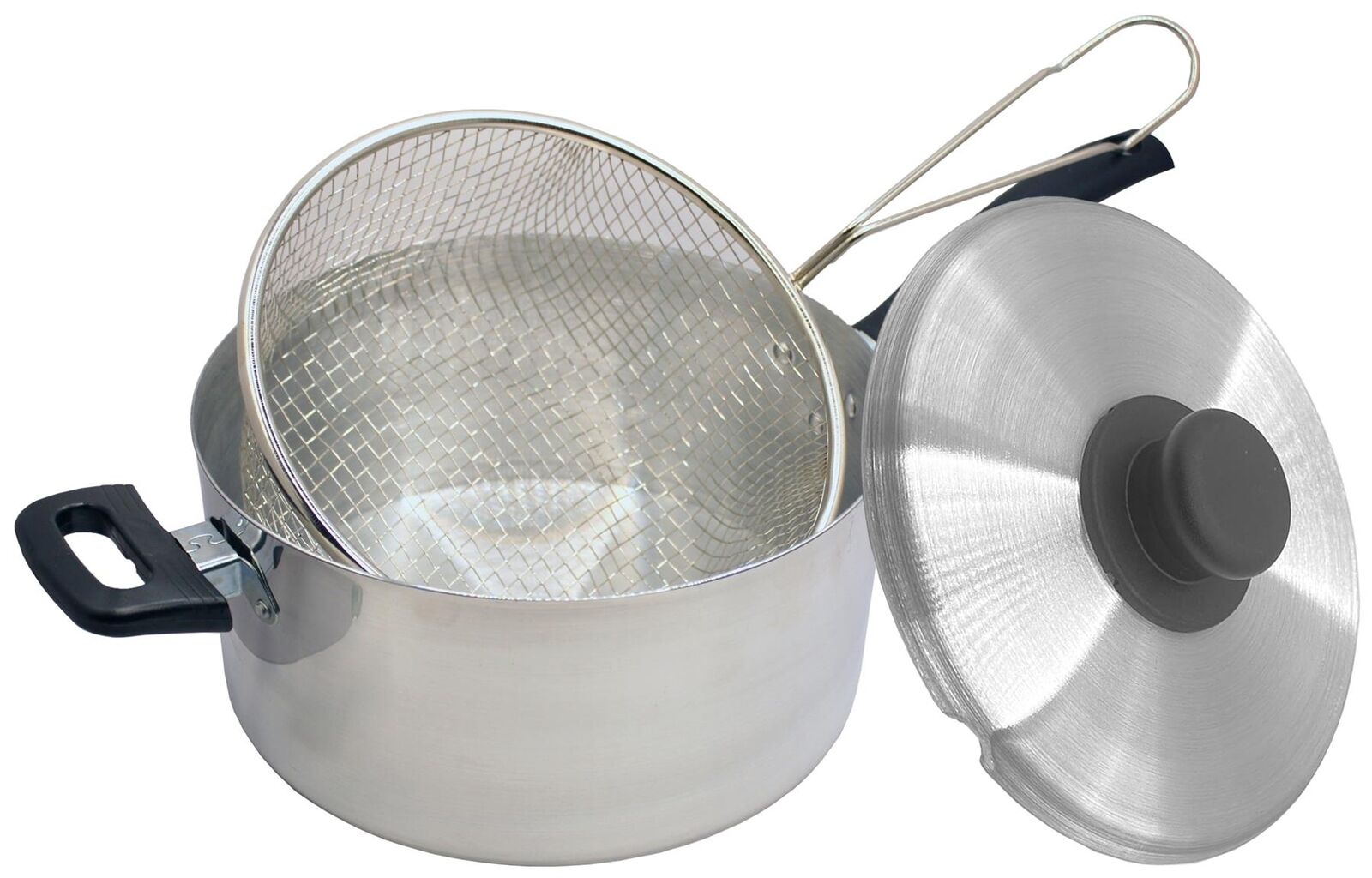 New 3 Pcs 22cm Aluminium Chip Pan Deep Fryer with Basket and Lid Saucepan