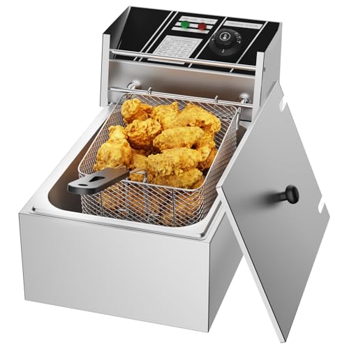 TAIMIKO Electric Deep Fryer Deep Fat Fryer Stainless Steel Chip Fryer Single Fat Tank 10L 2500W with Lid 6L Oil Easy Clean