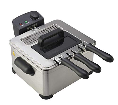 Deep Fat Fryer, Multi Cooker, Stainless Steel Chip Fryer with Lids & Oil Basket, Temperature Control with Silver Lid & Copper Draining Faucet, Electric Fryer (10lx2 )