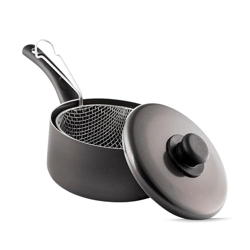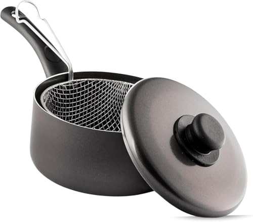GRACE KITCHEN Cookware – Non Stick Chip Pans with Basket and Lid Aluminium Deep Fryer Saucepan (22cm)
