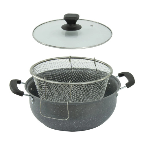 3 in 1 Non Stick Fryer Chip Pan with Lid Wire Basket 24cm Deep Fat Frying Pot