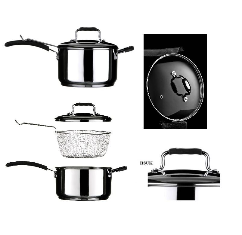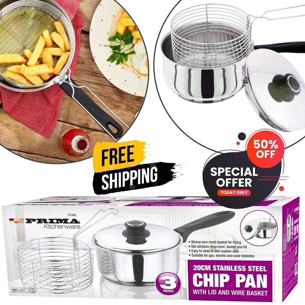 New 22cm 3 Pcs Chip Pan Fryer with Basket and Lid Saucepan Set 2 in 1