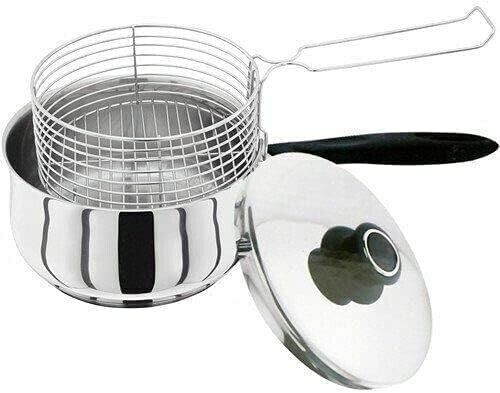 Vinod Stainless Steel Large Chip Fryer Deep Fryer & Basket With Lid- Size 20 cm
