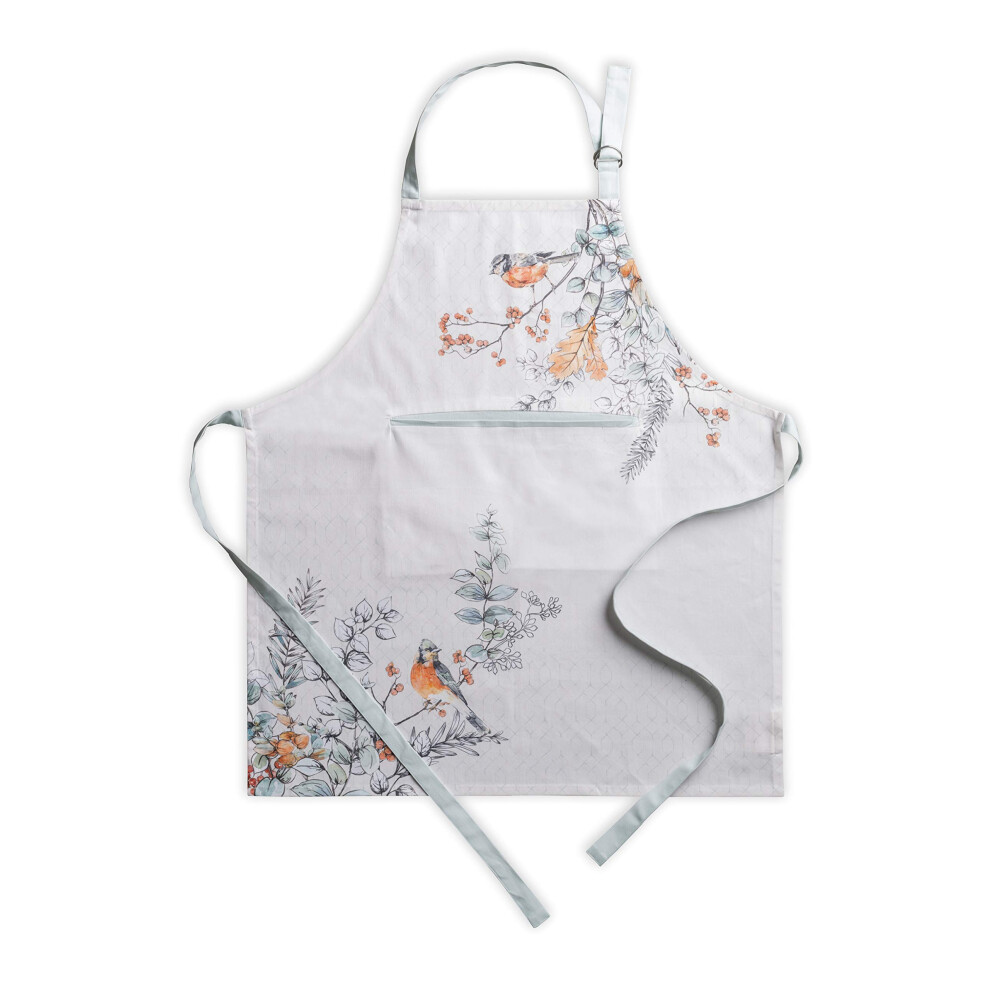 Maison d' Hermine Whitish Shabby Chique 100% Cotton 1 Piece Kitchen Apron with an Adjustable Neck & Hidden Centre Pocket with Long Ties for Women Men