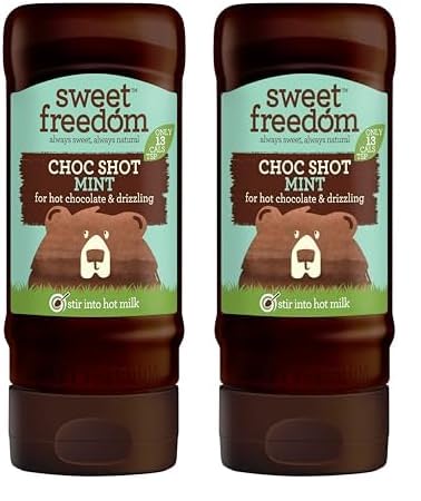 Sweet Freedom - CHOC SHOT Mint for Hot Chocolate & Drizzling - Only 13 Calories Per Teaspoon - For Milk Shakes, Desserts, Pancakes - Healthy Baking - Vegan & Plant Based - 320g, Pack of 2