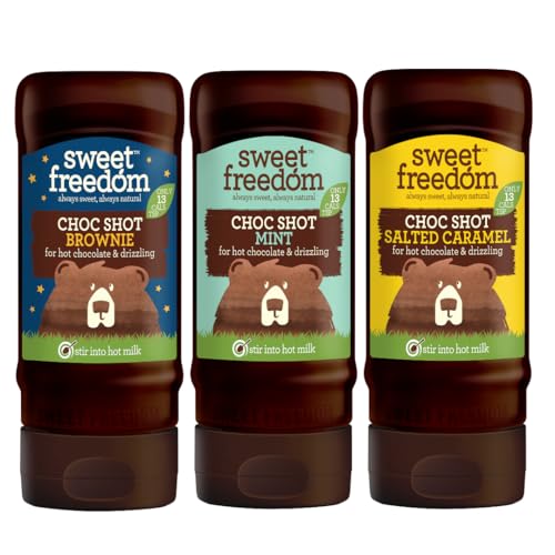 Sweet Freedom Delicious Plant Based Vegan Choc Shot Bundle - Choc Shot Brownie Flavour 320g Pack of 1 X Choc Shot Mint Flavour 320g Pack of 1 X Choc Shot Salted Caramel Flavour 320g Pack of 1