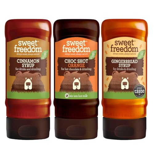 Sweet Freedom Vegan Winter Warmers Bundle - x1 Orange Spice Choc Shot 320 G, x1 Gingerbread Syrup 350 G & x1 Cinnamon Syrup 350 G