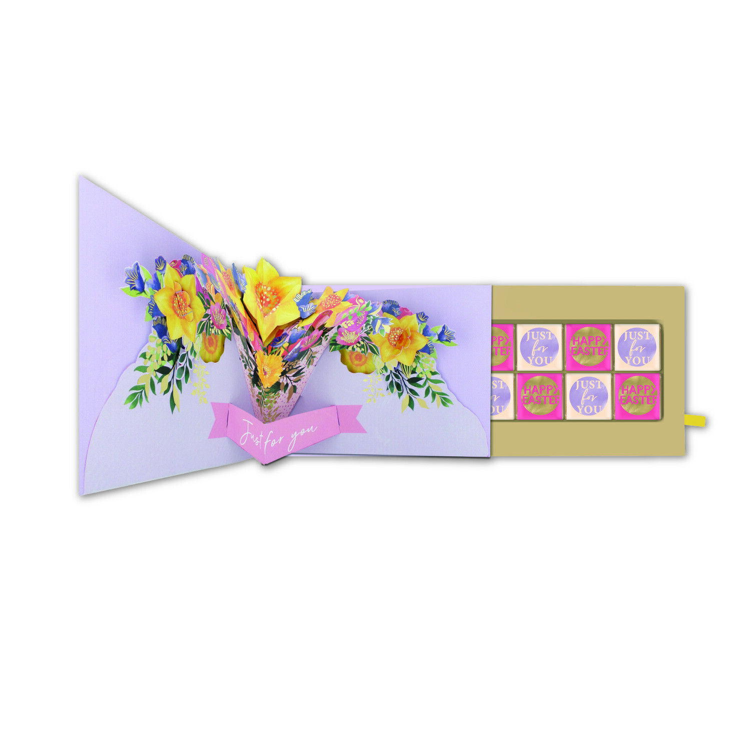 Pop Up Card & Chocolate Treat Tray Floral Bouquet Easter Card & Gift