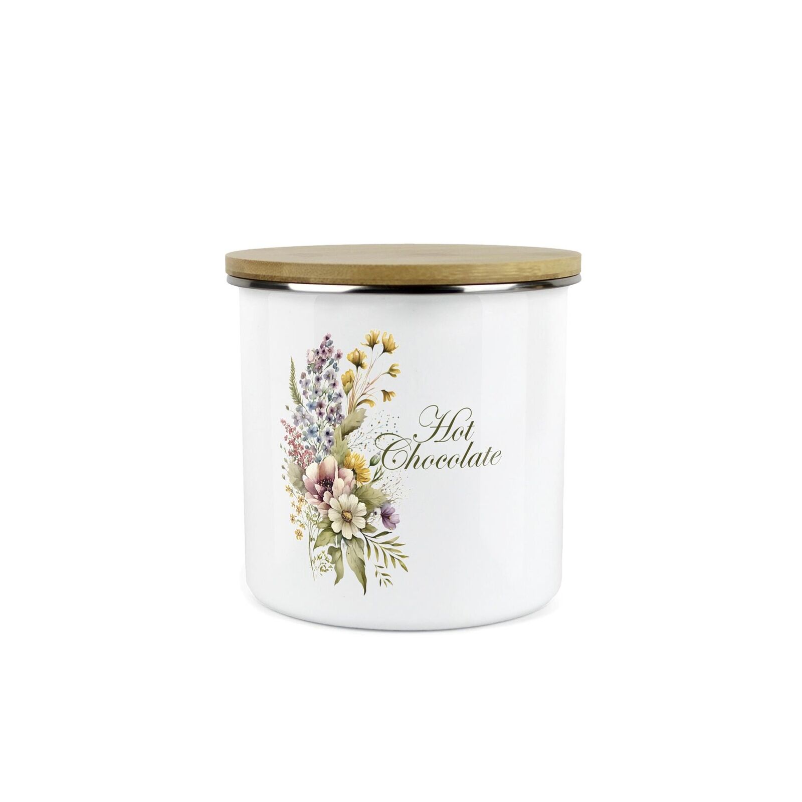 Flower Bouquet Hot Chocolate Canister - Floral Enamel Kitchen Storage Jar Gift