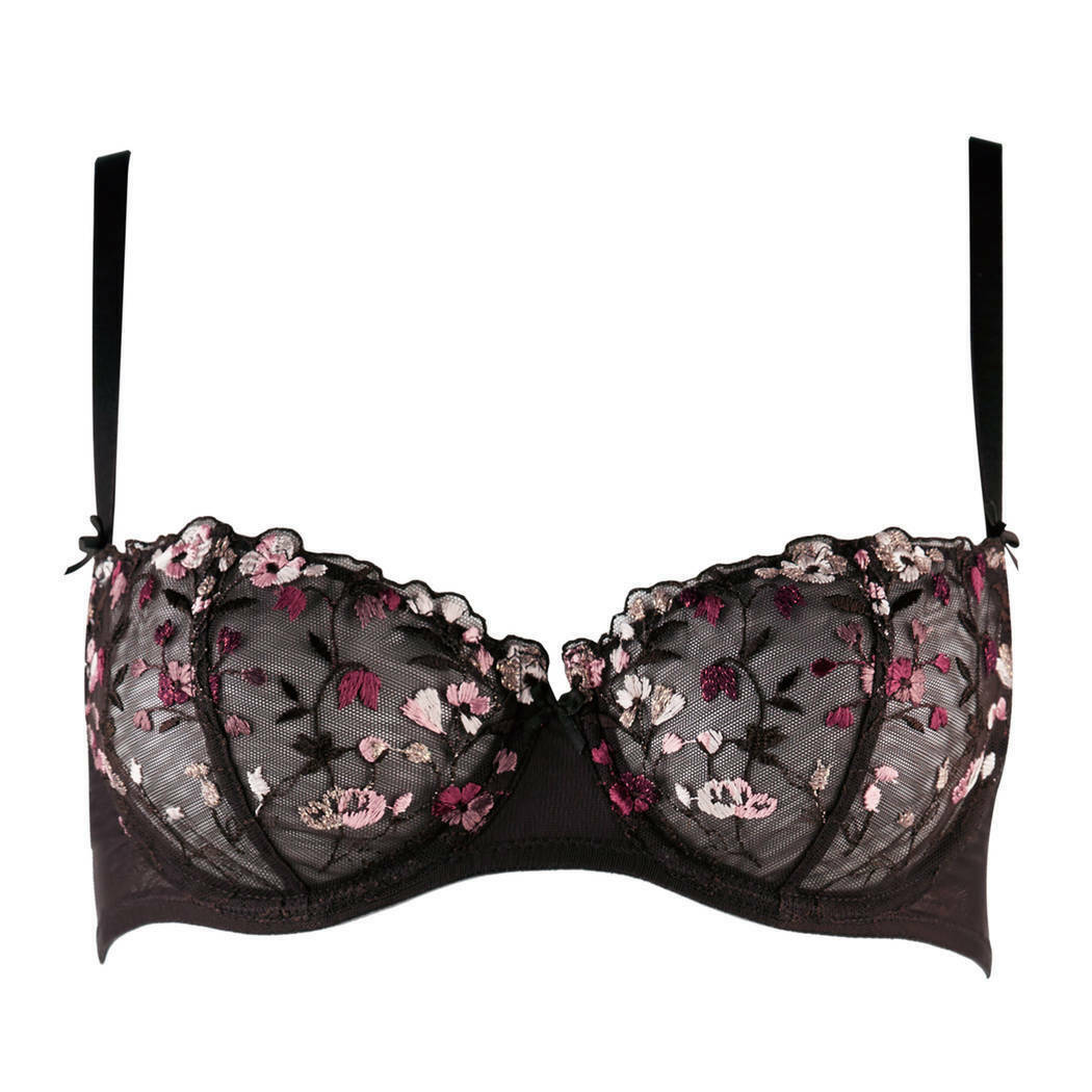 Aubade Balconette Bra Divine Bouquet 85B Chocolate Embroideries FB14
