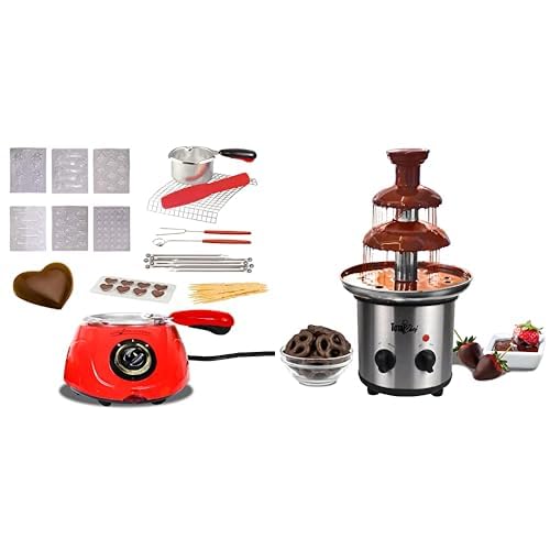 Total Chef Chocolate Melting Pot Fondue Set 250g Electric Chocolate Melter Candy Maker + 3 Tier Electric Chocolate Fountain Machine 680g Adjustable Settings Warm Function Perfect for Chocolate Melting