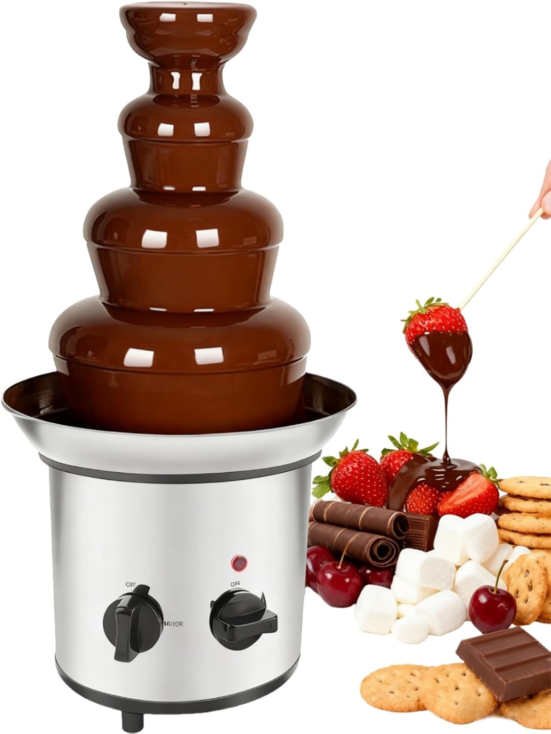 4 Tier Electric Chocolate Fondue Fountain Machine For Parties Stainless Steel UK