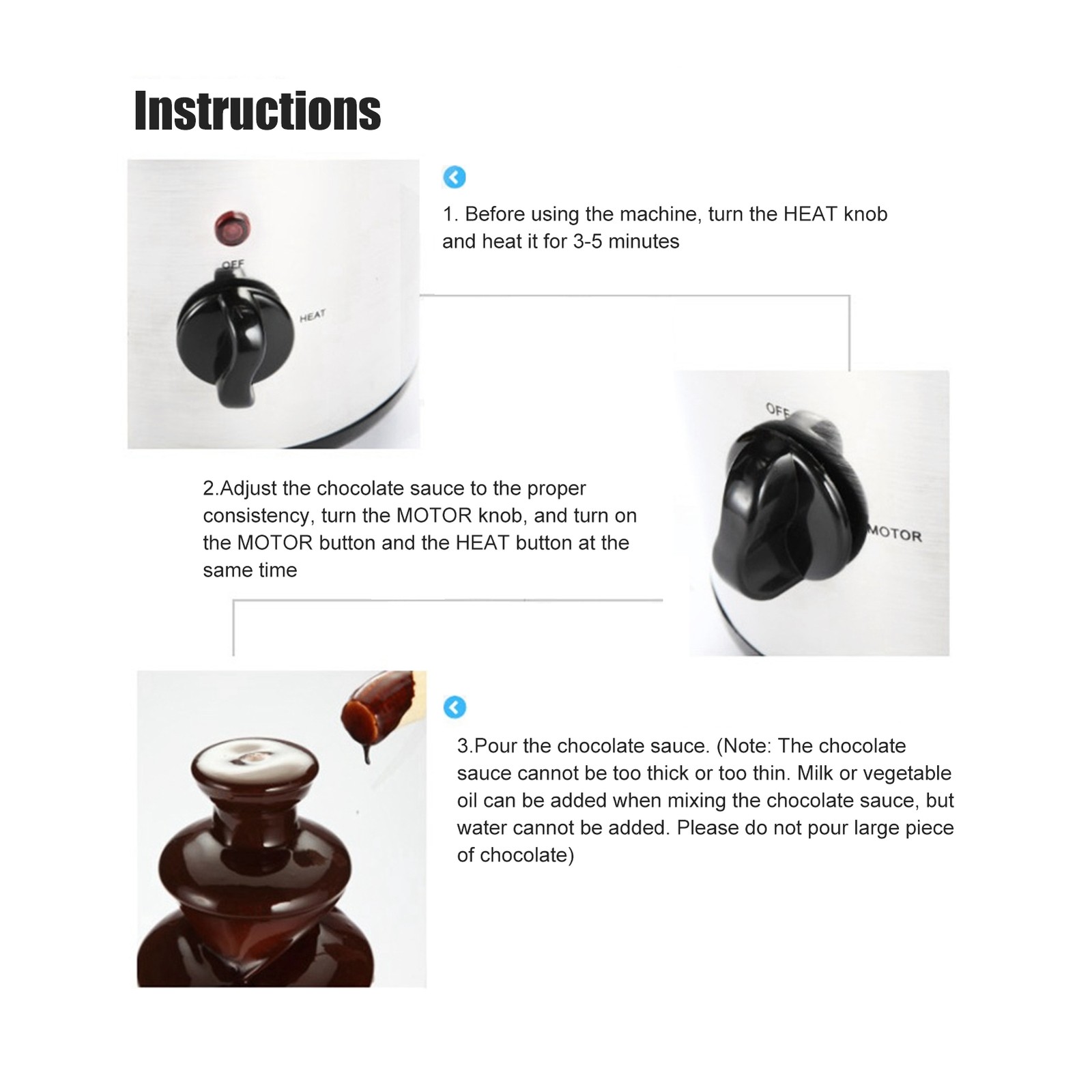 Opal Large Size Stainless Steel Chocolate Fountain 900ml 100w Fondue Set Electric 3-Tier Machine with Hot Melting Pot Base OCF11 (OCF11)