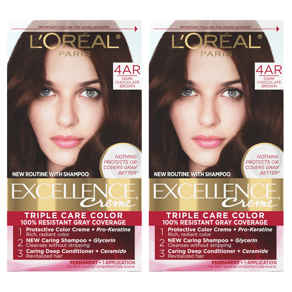 L'Oreal Paris Excellence Creme Permanent Hair Color 4AR Dark Chocolate Brown 100 percent Gray Coverage Hair Dye Pack of 2
