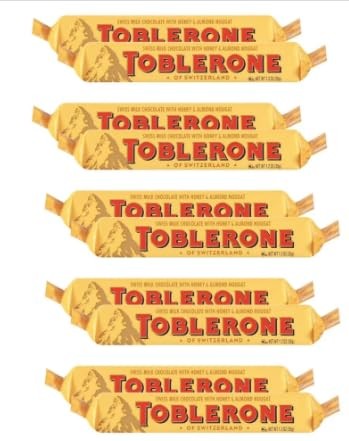 TOBLERONE 10×35g SWISS MILK CHOCOLATE WITH ALMOND BARS.BEST OFFER.