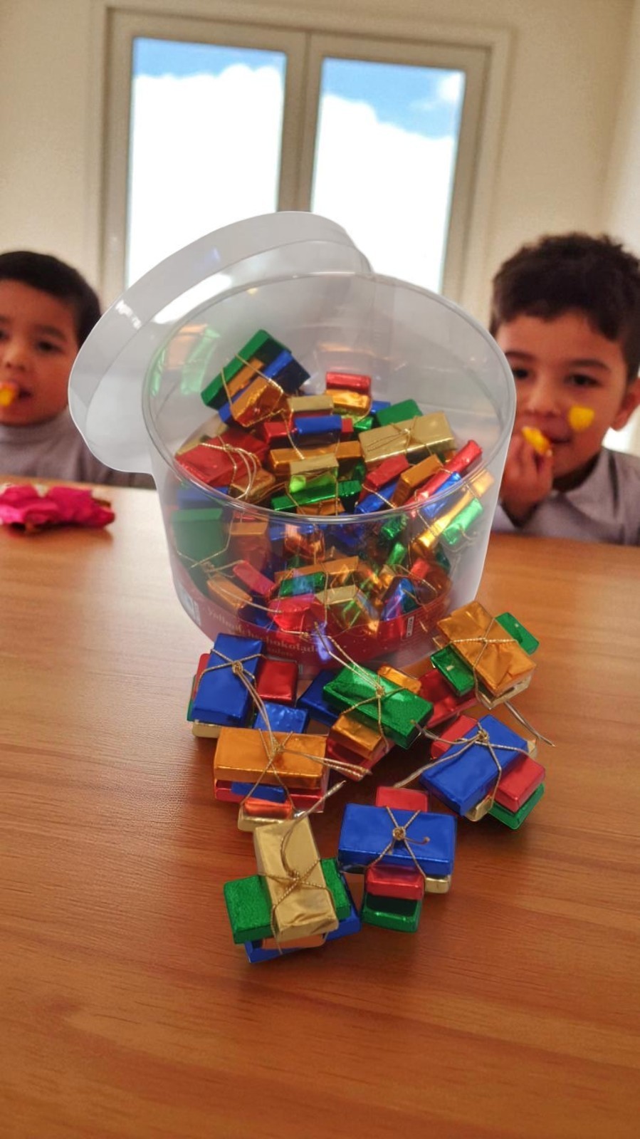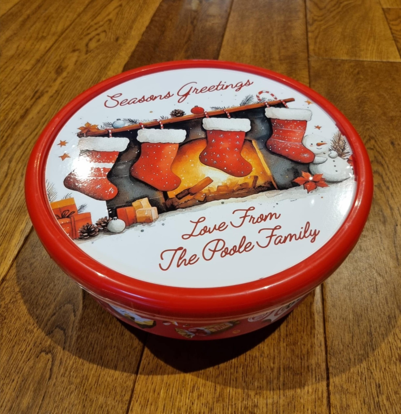 Personalised Christmas Chocolate Tub Label Teacher Grandparents Family Gift
