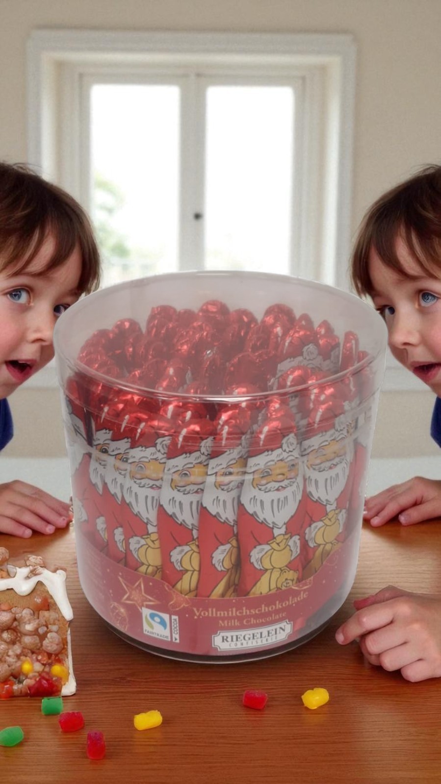 Riegelein Milk Chocolate Santa Figures Tub 812.5g Festive Xmas Chocolates Vegeta