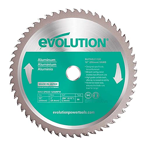 Evolution Power Tools A255TCT-80MS Circular Saw Blade (AKA Chop Saw Blade) For Cutting Aluminium - Carbide Tipped Metal Saw Blade Produces Virtually No Heat, Burrs or Sparks, 255 mm