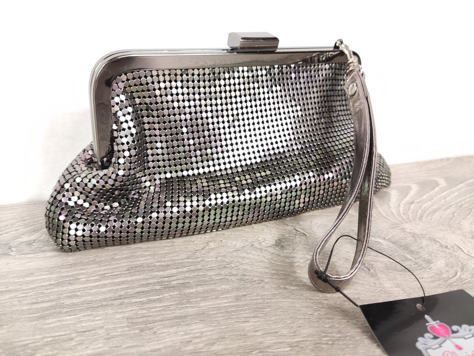 NEW CHRISTINA AGUILERA SECRET POTION Silver Metal Mesh Handbag Wristlet Clutch