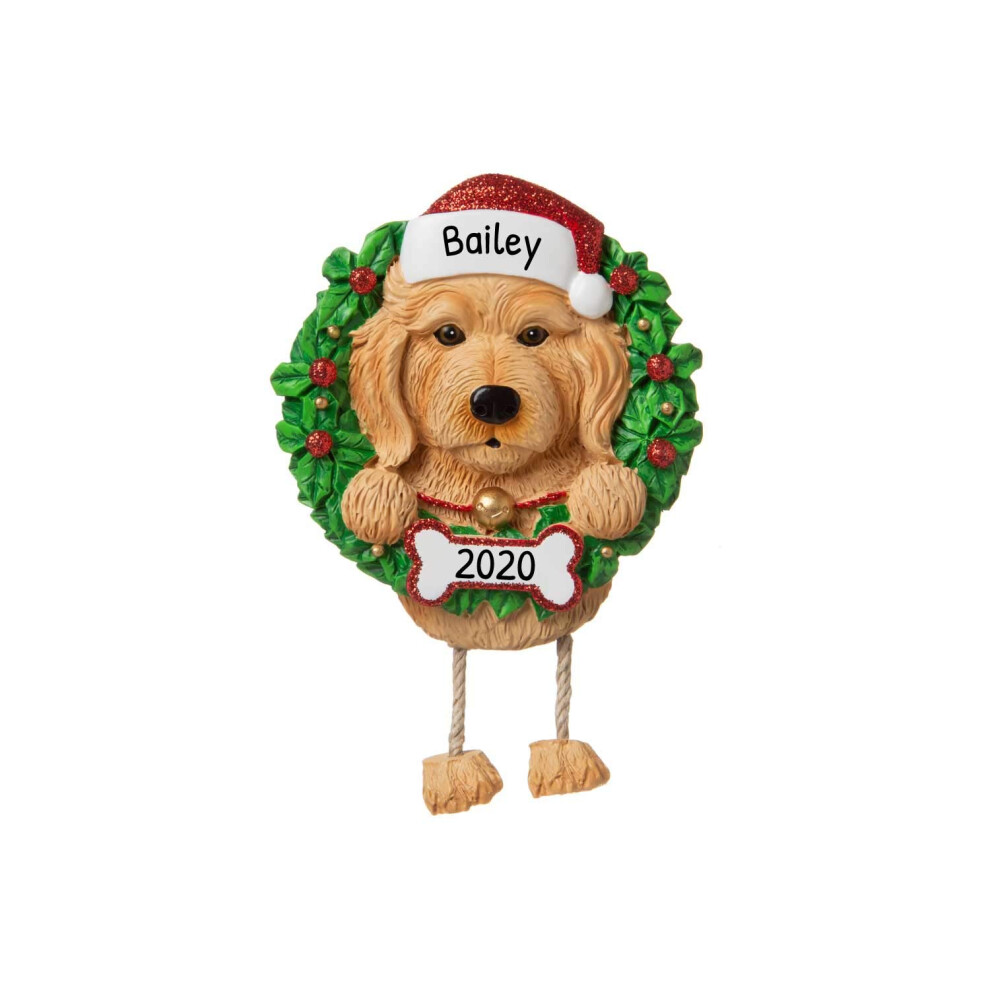 Personalized Dog Christmas Ornaments 2024- Labradoodle in Christmas Wreath and Hat Ornament Hanging Decor Christmas Tree Decorations Personalized Gift