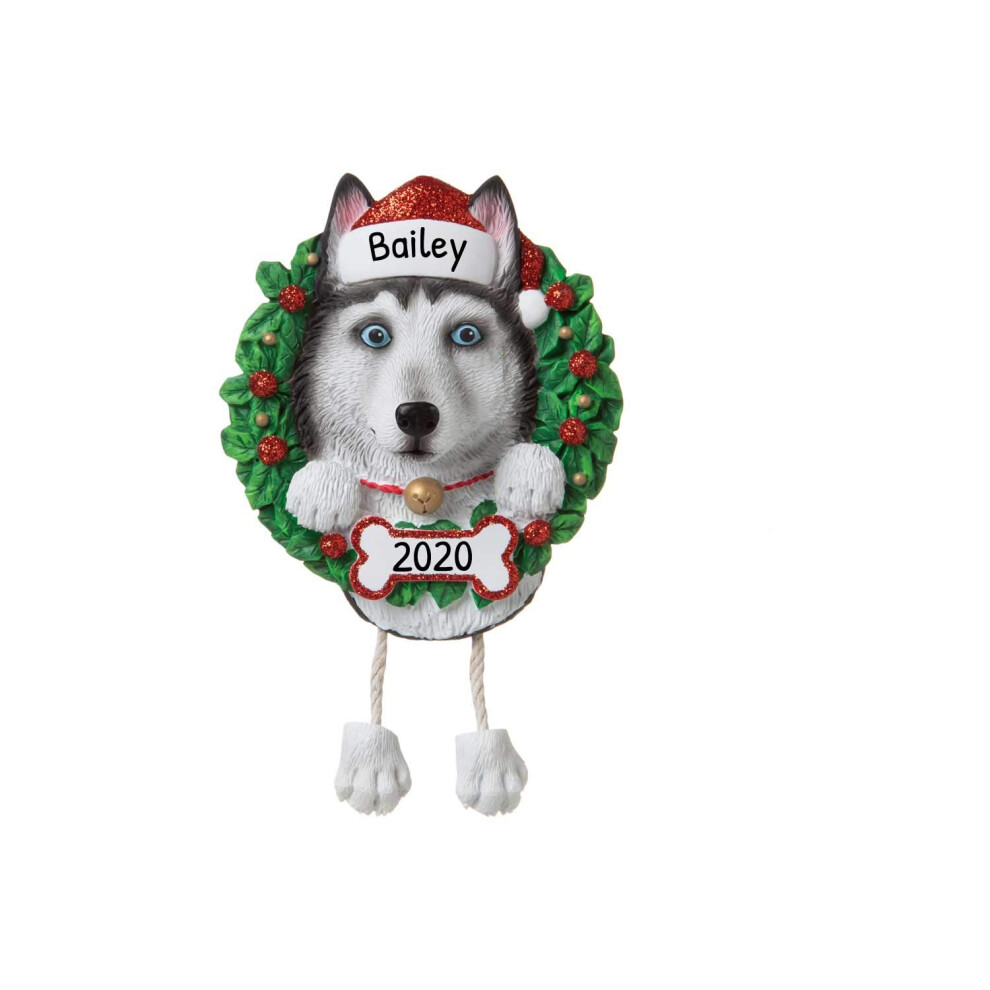 Personalized Dog Christmas Ornaments 2024 - Dog Wreath Husky Ornament for Dog Lovers Dogs First Christmas Ornament 2024 Customized Dog Gifts Custom Do