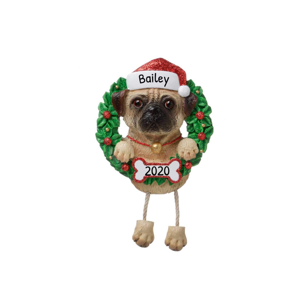 Personalized Dog Christmas Ornaments 2024 - Dog Wreath Pug Christmas Ornament for Dog Lovers Dogs First Christmas Ornament 2024 Customized Dog Gifts C