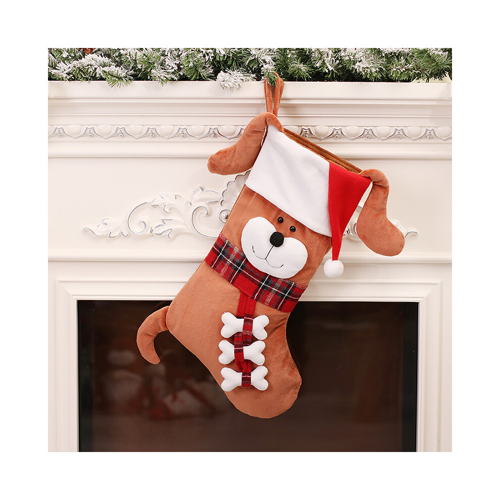 (3) 2024 Christmas Ornaments Socks Dog Cat Pendants XMAS Fur Collar Lattice Socks Christmas Tree Decorations Navidad Wholesale