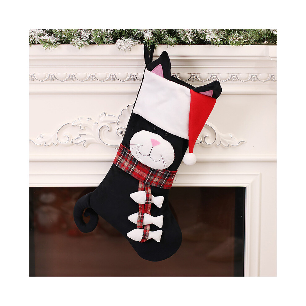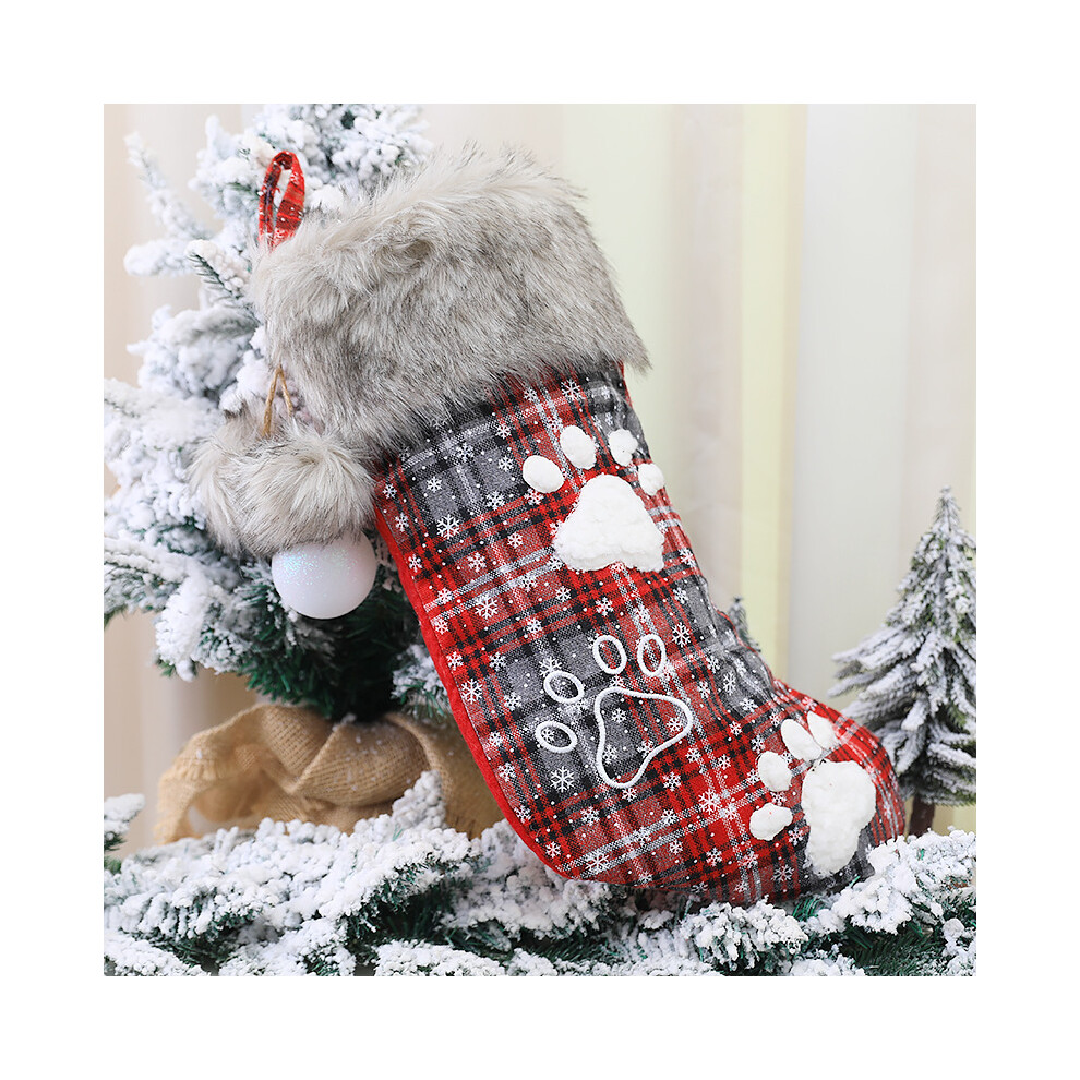 (4) 2024 Christmas Ornaments Socks Dog Cat Pendants XMAS Fur Collar Lattice Socks Christmas Tree Decorations Navidad Wholesale