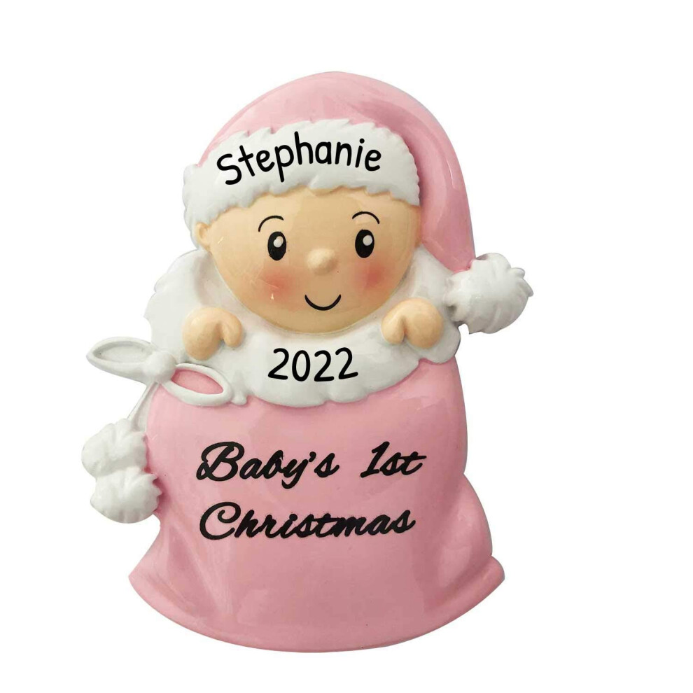 Personalized Babys First Christmas Ornaments 2024 My First Custom Christmas Ornaments Newborn Baby Girl in Pink Christmas Sant