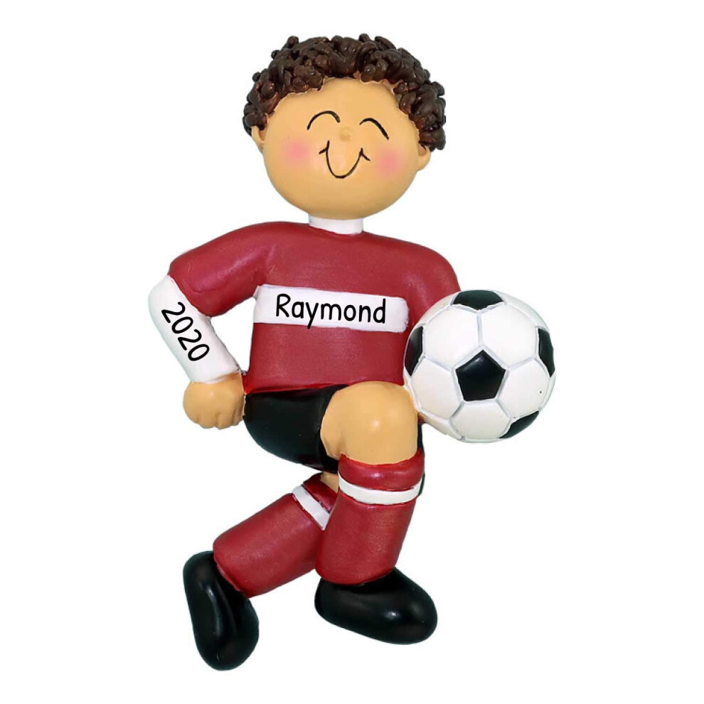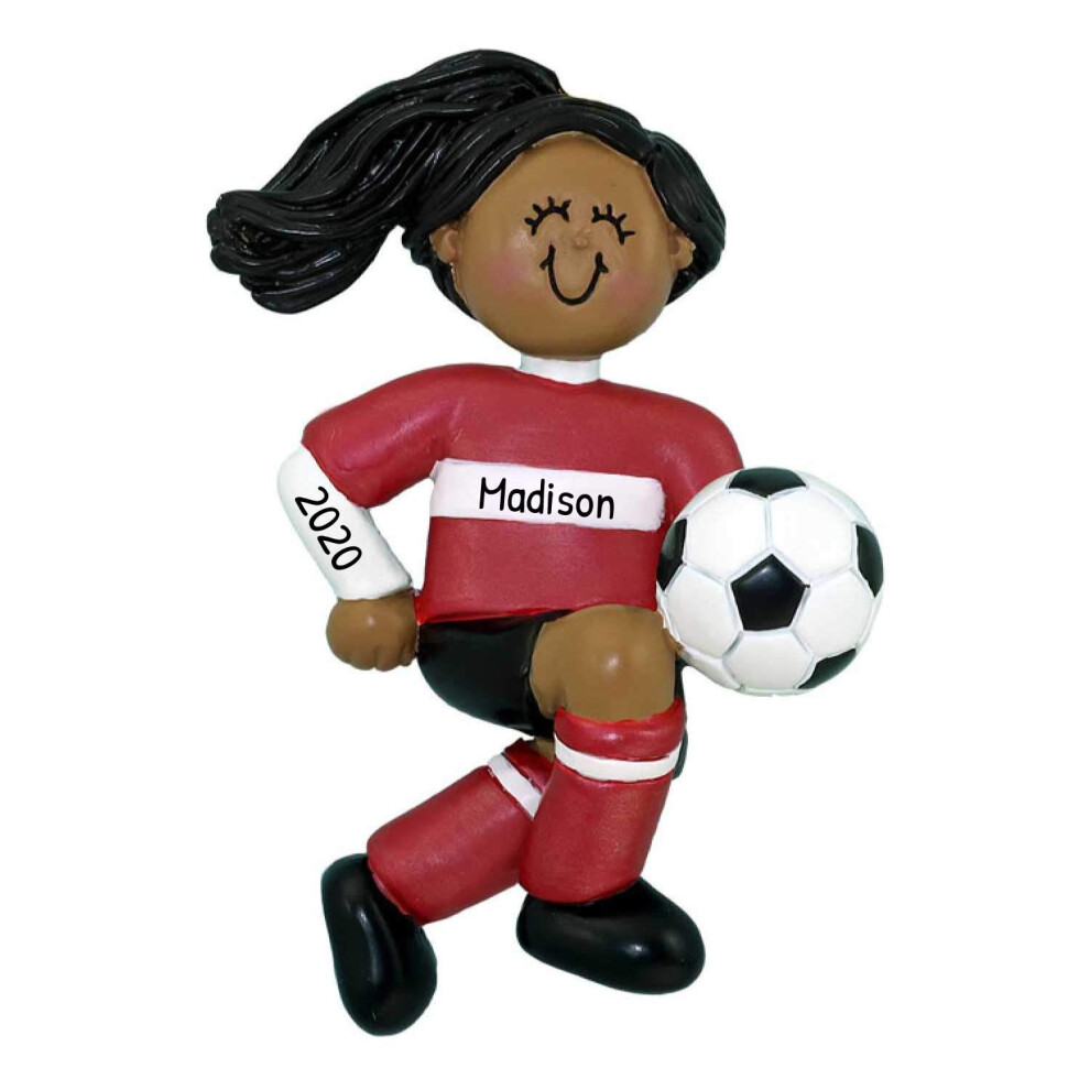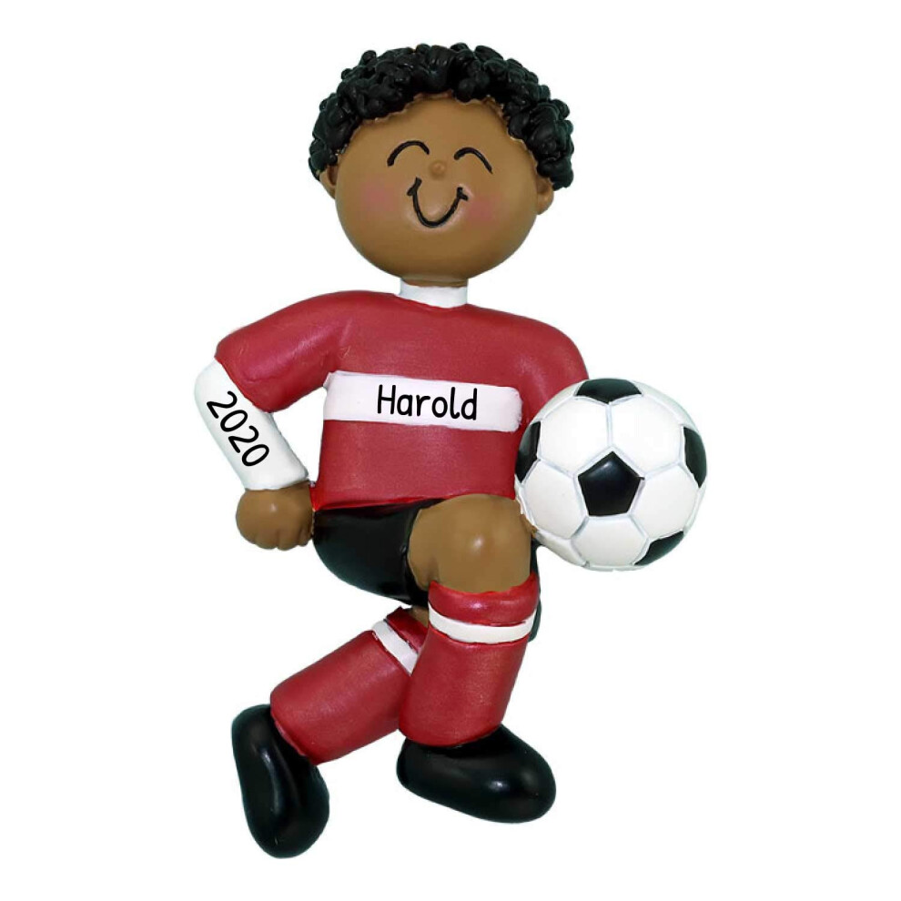 Personalized Red Uniform African-American Boy Christmas Ornaments 2024 - Customizable Soccer sports Theme ornament decorations Gift for Spor